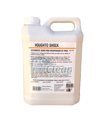 Para limpeza de pisos de gressit, ladrilhos e azulejos, preparar a solução de Houghto Shock a 20-30%, aplicar, esfregar munido de equipamentos de segurança individual e enxaguar após 10 minutos de contato. Para limpeza e abrilhantamento de superficies de aço inoxidável, utiliza-lo a uma concentração de 5,0-20,0%.