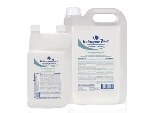 Indicação: O Indazyme 7 Max é um eficiente detergente enzimático, com baixa formação de espuma, para remoção de resíduos orgânicos em artigos e instrumentos médico-hospitalares, odontológicos e laboratoriais. Formulação sem corante e pH neutro. Indicado para limpeza manual e automatizada.