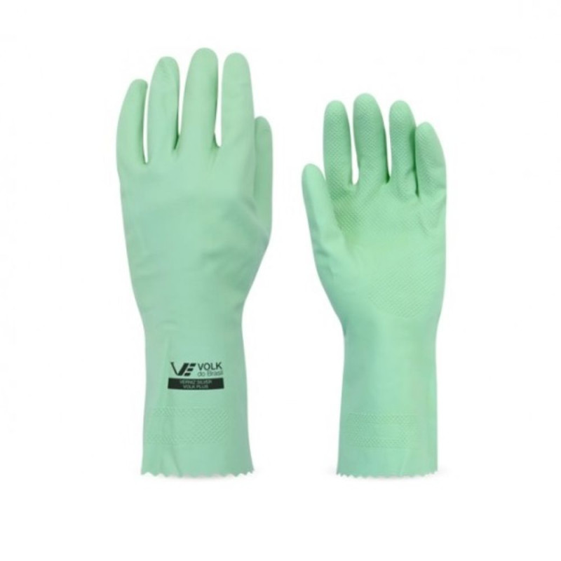 Luva de segurança confeccionada em látex de borracha natural, revestimento interno em verniz silver, antiderrapante na palma e face palmar dos dedos.